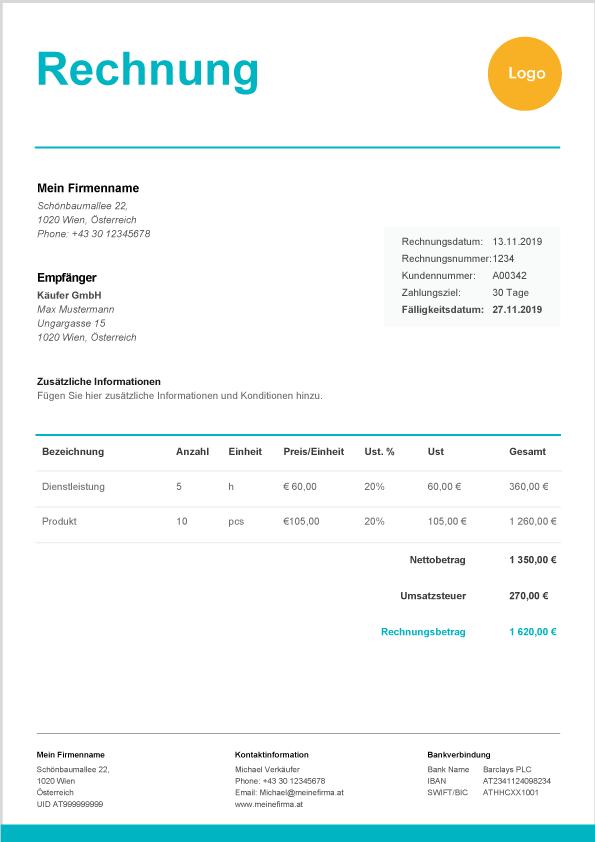Kostenlose Rechnungsvorlage Fur Osterreich Zervant